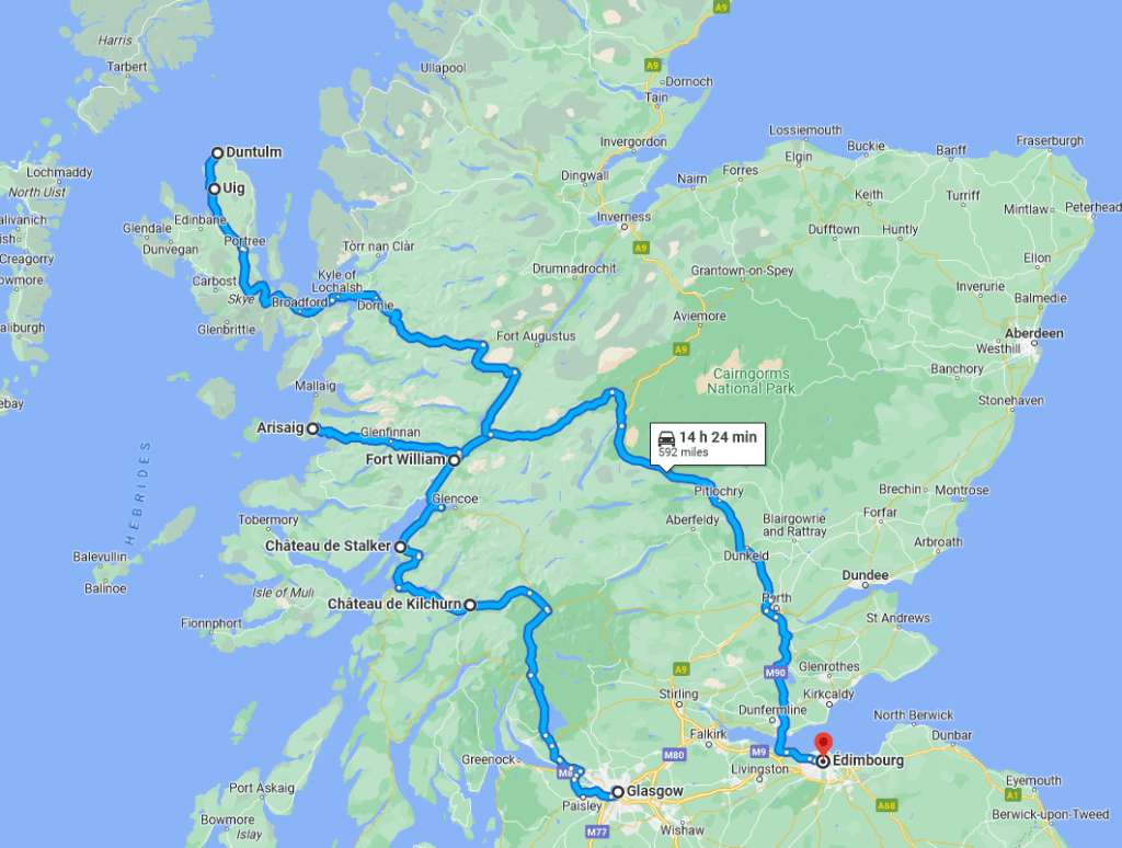 Après de nombreuses heures de recherches et de lecture, je suis partie sur quelque chose d’assez classique, nous permettant de découvrir de nombreux lieux majestueux de l’Ecosse ainsi que la capitale.